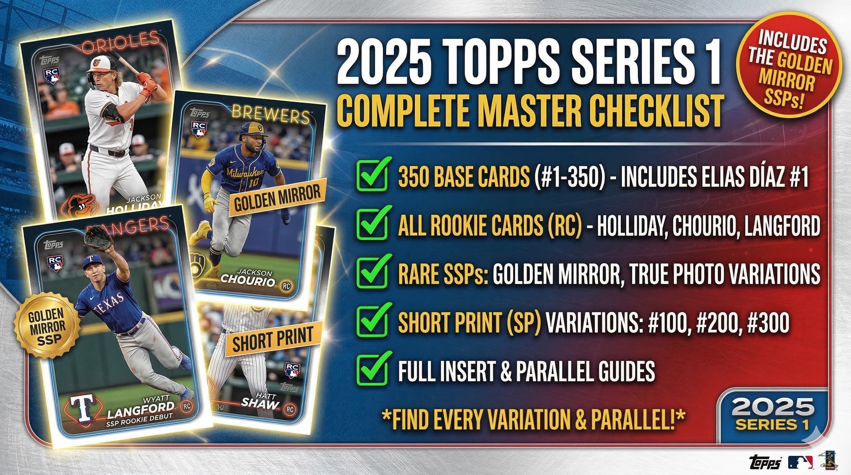 1 Shohei Ohtani, Los Angeles Dodgers2 Thairo Estrada, San Francisco Giants3 Lane Thomas, Cleveland Guardians4 Christian Encarnacion-Strand, Cincinnati Reds5 Tarik Skubal / Ronel Blanco / Framber Valdez, Detroit Tigers / Houston Astros – League Leaders6 Tyler Gentry, Kansas City Royals RC7 Alec Bohm, Philadelphia Phillies8 Seth Brown, Athletics9 Luis García Jr., Washington Nationals10 Connor Wong, Boston Red Sox11 Triston Casas, Boston Red Sox12 Bailey Ober, Minnesota Twins13 Luis De Los Santos, Toronto Blue Jays RC14 Anthony Rizzo, New York Yankees15 Mitch Haniger, Seattle Mariners16 Carlos Rodriguez, Milwaukee Brewers RC17 Jack Kochanowicz, Los Angeles Angels RC18 Orelvis Martinez, Toronto Blue Jays RC19 Xander Bogaerts, San Diego Padres20 Coby Mayo, Baltimore Orioles RC21 Nick Lodolo, Cincinnati Reds22 Masyn Winn, St. Louis Cardinals23 Jorge Soler, Atlanta Braves24 Jhonkensy Noel, Cleveland Guardians RC25 Cade Povich, Baltimore Orioles RC26 Will Brennan, Cleveland Guardians – Checklist27 Angel Martínez, Cleveland Guardians RC28 Trevor Megill, Milwaukee Brewers29 José Ramírez / Aaron Judge / Brent Rooker, Cleveland Guardians / New York Yankees / Athletics – League Leaders30 Pedro León, Houston Astros RC31 Tyler Stephenson, Cincinnati Reds32 Chayce McDermott, Baltimore Orioles RC33 José Berríos, Toronto Blue Jays34 Detroit Tigers – Team Card35 Anthony Volpe, New York Yankees36 Greg Jones, Colorado Rockies RC37 Spencer Steer, Cincinnati Reds38 Nico Hoerner, Chicago Cubs39 San Diego Padres – Team Card40 Joe Ryan, Minnesota Twins41 Alec Burleson, St. Louis Cardinals42 Andrew McCutchen, Pittsburgh Pirates43 Brady Singer, Kansas City Royals44 Brenton Doyle, Colorado Rockies45 Brice Turang, Milwaukee Brewers46 Tanner Houck, Boston Red Sox47 Blake Perkins, Milwaukee Brewers48 Michael Toglia, Colorado Rockies49 Christian Yelich, Milwaukee Brewers50 Leody Taveras, Texas Rangers51 Jonah Heim, Texas Rangers52 Will Benson, Cincinnati Reds53 Chris Taylor, Los Angeles Dodgers54 Austin Riley, Atlanta Braves55 Jake Rogers, Detroit Tigers56 Ranger Suárez, Philadelphia Phillies57 Nick Gordon, Miami Marlins58 Dylan Cease, San Diego Padres59 Royce Lewis, Minnesota Twins60 Chicago Cubs – Team Card61 Freddy Peralta, Milwaukee Brewers62 Jon Gray, Texas Rangers63 Jake Bloss, Toronto Blue Jays RC64 Ian Happ, Chicago Cubs65 Gunnar Henderson, Baltimore Orioles66 Logan Gilbert, Seattle Mariners67 Trey Sweeney, Detroit Tigers RC68 Hunter Feduccia, Los Angeles Dodgers RC69 Cedric Mullins, Baltimore Orioles70 Patrick Bailey, San Francisco Giants71 Tarik Skubal, Detroit Tigers72 Tyler Soderstrom, Athletics – Future Stars73 Luis Castillo, Seattle Mariners74 Dylan Crews, Washington Nationals RC75 Colin Rea, Milwaukee Brewers76 Houston Astros – Team Card77 José Ramírez, Cleveland Guardians78 Corbin Carroll, Arizona Diamondbacks79 Aaron Judge / Juan Soto / Anthony Santander, New York Yankees / Baltimore Orioles – League Leaders80 Jace Jung, Detroit Tigers RC81 Carlos Correa, Minnesota Twins – Checklist82 George Springer, Toronto Blue Jays83 Anthony Rendon, Los Angeles Angels84 Kameron Misner, Tampa Bay Rays RC85 Los Angeles Angels – Team Card86 Willy Adames / Shohei Ohtani / Manny Machado, Milwaukee Brewers / Los Angeles Dodgers / San Diego Padres – League Leaders87 Shay Whitcomb, Houston Astros RC88 Kevin Gausman, Toronto Blue Jays89 Zach Dezenzo, Houston Astros RC90 Eloy Jiménez, Baltimore Orioles91 Kenta Maeda, Detroit Tigers92 Danny Jansen, Boston Red Sox93 Rhys Hoskins, Milwaukee Brewers94 Nick Sogard, Boston Red Sox RC95 Gavin Sheets, Chicago White Sox96 Seattle Mariners – Team Card97 Will Warren, New York Yankees RC98 Paul Skenes, Pittsburgh Pirates99 Cincinnati Reds – Team Card100 Bobby Witt Jr., Kansas City Royals101 Nolan Arenado, St. Louis Cardinals102 Jonathan India, Cincinnati Reds103 Spencer Schwellenbach, Atlanta Braves RC104 Yilber Diaz, Arizona Diamondbacks RC105 Dylan Moore, Seattle Mariners106 Lawrence Butler, Athletics107 Ryan Mountcastle, Baltimore Orioles108 Mitch Keller, Pittsburgh Pirates109 Cristopher Sánchez, Philadelphia Phillies110 Atlanta Braves – Team Card111 Randy Arozarena, Seattle Mariners112 Rob Refsnyder, Boston Red Sox113 Marco Gonzales, Pittsburgh Pirates114 Ryan O’Hearn, Baltimore Orioles115 Carlos Narváez, New York Yankees RC116 Amed Rosario, Cincinnati Reds117 Josh Jung, Texas Rangers118 Justin Verlander, Houston Astros119 Daulton Varsho, Toronto Blue Jays120 Cristian Mena, Arizona Diamondbacks RC121 Andrew Vaughn, Chicago White Sox122 CJ Abrams, Washington Nationals123 New York Yankees – Team Card124 Richie Palacios, Tampa Bay Rays125 Jackson Merrill, San Diego Padres126 Dillon Dingler, Detroit Tigers RC127 Joc Pederson, Arizona Diamondbacks128 Ketel Marte, Arizona Diamondbacks129 Brent Rooker, Athletics130 Nathan Eovaldi, Texas Rangers131 David Peterson, New York Mets132 Connor Norby, Miami Marlins RC133 José Caballero, Tampa Bay Rays134 Jameson Taillon, Chicago Cubs135 Maikel Garcia, Kansas City Royals136 Lourdes Gurriel Jr., Arizona Diamondbacks137 Miles Mikolas, St. Louis Cardinals138 Isaac Paredes, Chicago Cubs139 Jordan Beck, Colorado Rockies140 Andrew Abbott, Cincinnati Reds141 Kyle Schwarber, Philadelphia Phillies142 Jordan Westburg, Baltimore Orioles – Future Stars143 Manny Machado, San Diego Padres – Checklist144 Shohei Ohtani / Marcell Ozuna / Kyle Schwarber, Los Angeles Dodgers / Atlanta Braves / Philadelphia Phillies – League Leaders145 Matt Olson, Atlanta Braves146 Clayton Kershaw, Los Angeles Dodgers147 Bryson Stott, Philadelphia Phillies148 Ceddanne Rafaela, Boston Red Sox – Future Stars149 Jeff McNeil, New York Mets150 Elly De La Cruz, Cincinnati Reds – Future Stars151 Tarik Skubal / José Berríos / Seth Lugo, Detroit Tigers / Toronto Blue Jays / Kansas City Royals – League Leaders152 Luis Rengifo, Los Angeles Angels153 Brandon Lowe, Tampa Bay Rays154 Orlando Arcia, Atlanta Braves155 Willi Castro, Minnesot